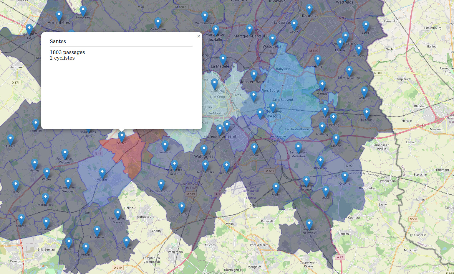 Comptage du nombre de trajet commençant, traversant ou terminant sur un territoire